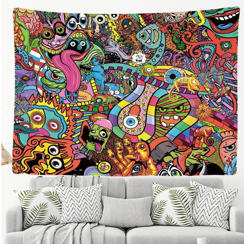 - Large wall wallpaper 200 cm horizontal x 150 cm vertical. Hanging is easy with the included pins. Wash at low temperature. The wall decoration is available in many different decoration themes such as tarot or aesthetics, anime, macramy, mandala, Indian boho, mouth, hippie oriental, trippy psy, psychedelic, forest nature, gothic decoration or vintage.