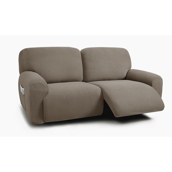 ULTICOR Extra Wide 75" - 100", Reclining 2 Seater Sofa, Extra Wide Reclining Love Seat Slipcover, 6-Piece Jacquared Fabric, Reclining Sofa Covers, Thick, Soft, Washable (Style 3) (Taupe)