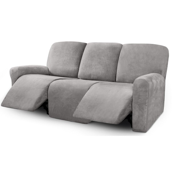ULTICOR Velvet 8-Pieces Recliner Sofa Covers Stretch Reclining Couch Covers for 3 Cushion Reclining Sofa Slipcovers Furniture Covers Thick Soft Washable (3 Seater Recliner Cover, Light Grey)