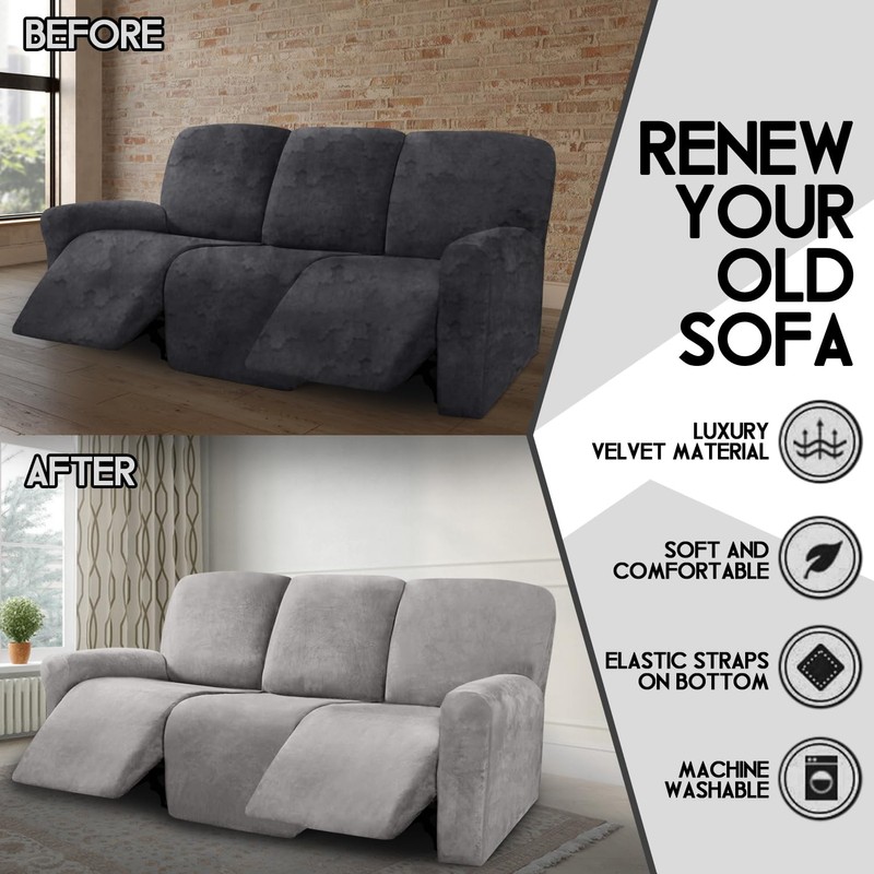 - HIGH QUALITY MATERIAL: This innovated PATENTED 8 Pieces 3 seater reclining sofa cover is crafted from luxurious velvet plush fabric, and is very soft, comfortable and sturdy ULTICOR sofa covers are as close to custom.