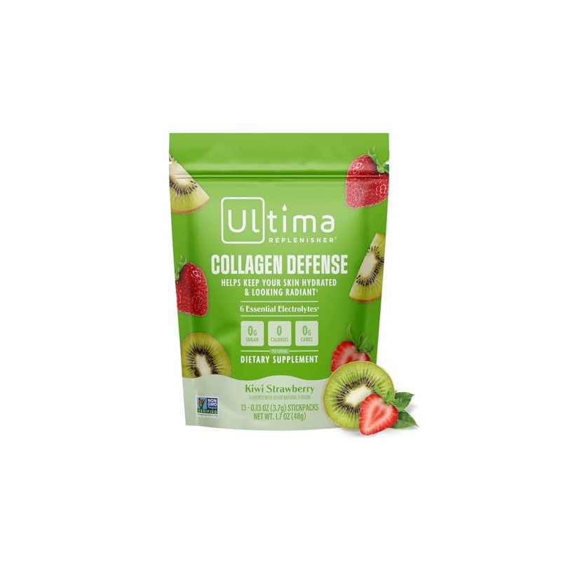 Ultima Replenisher Collagen Defense Supplement and Electrolytes Powder - Kiwi Strawberry, 13 Stickpacks - Hydration Packets with Dermaval and Biotin that Keep Your Skin Hydrated and Looking Radiant