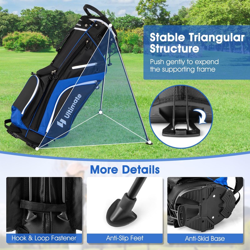 ULTIMATE 14-Way Golf Stand Bag, Portable Golf Bag w/ 6 Pockets,Cooler Bag & Waterproof Valuable Pocket, Rain Hood, Ergonomic Dual Strap System & Carrying Handles, 5 LBS Lightweight for Adults (Blue)