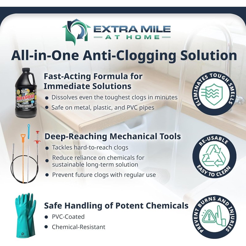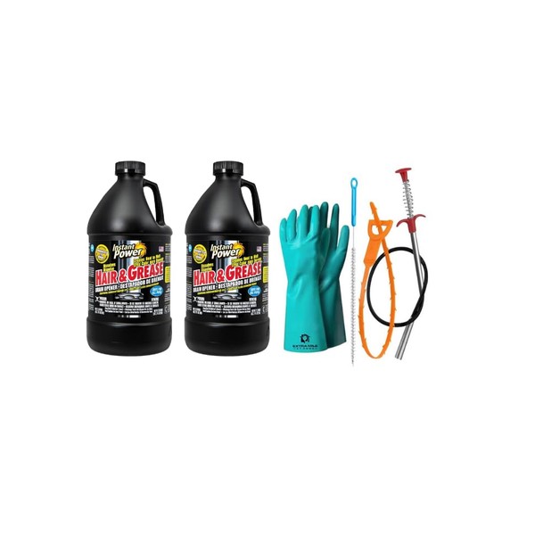 - COMPLETE KIT: Includes 2 bottles of professional-grade drain opener, protective gloves, and specialized drain cleaning tools for tough clogs