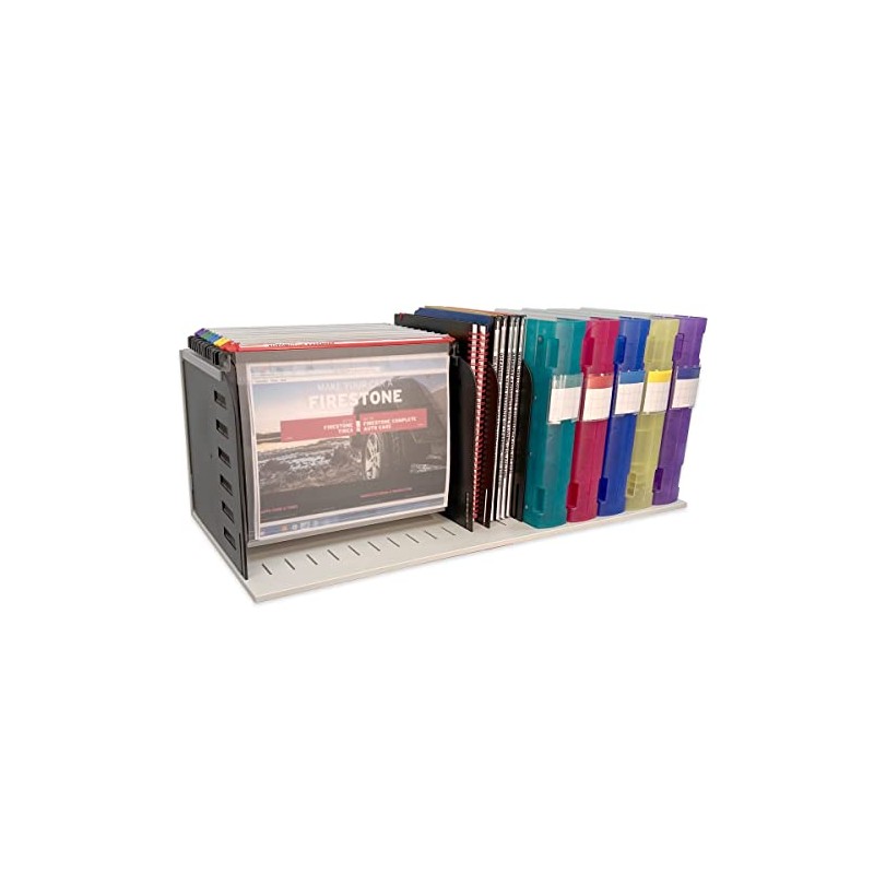 - COMBINES HANGING & VERTICAL FILING - Includes all of the parts needed to create many different configurations. Includes 9 dividers, and hanging file tracks. Dividers lock into base and back panels for rigidity, adjust in 1" increments, and keep binders, catalogs, and magazines neat and upright.