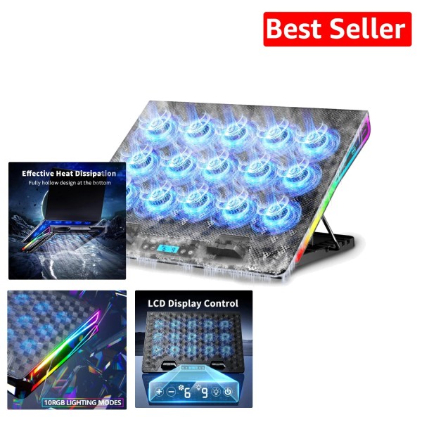 Ultimate RGB Gaming Laptop Cooling Pad with 15 Silent Fans for 15-18" Laptops