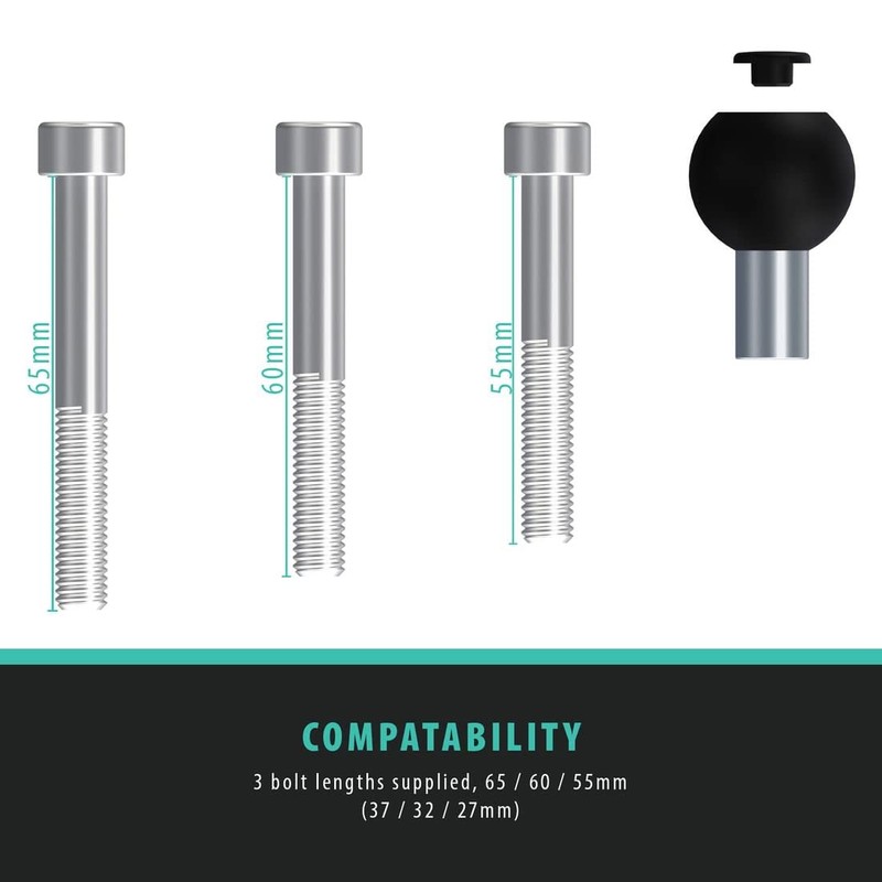 - Supplied with 3 lengths of bolt and 1" ball to fit Ultimateaddons and similar mounts on market