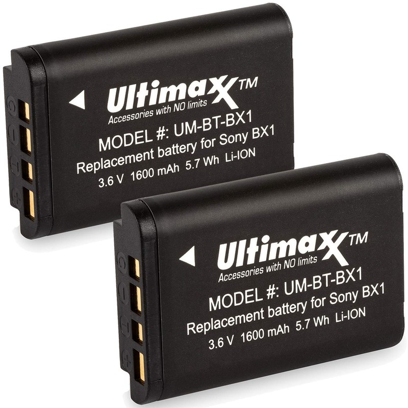 Ultimaxx NP-BX1 Extended Life Batteries (2-Pack) (1600mAh / 3.6V / 5.7Wh) for Cyber-Shot DSC-HX95, HX99, HX350, RX1, RX1R II, RX100 (II/III/IV/V/VA/VI/VII), FDR-X3000, HDR-AS50, AS300, ZV-1 and More