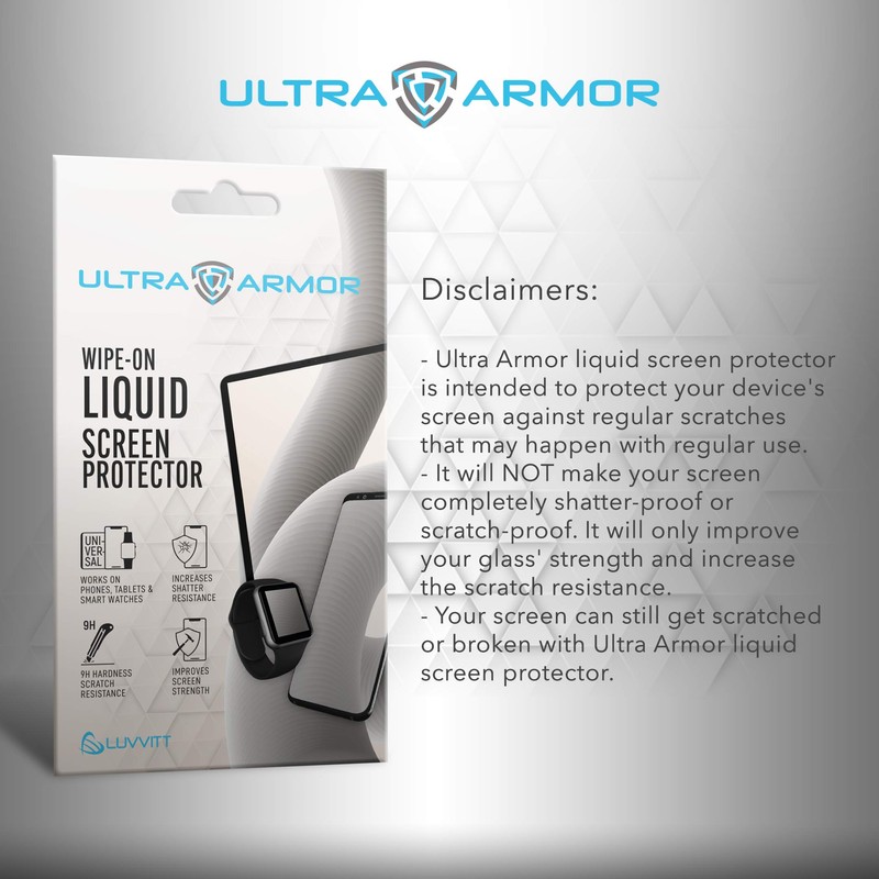 - Ultra Armor Liquid Screen Protector is a wipe-on liquid coating that bonds to the glass of your device and improves scratch and impact resistance.