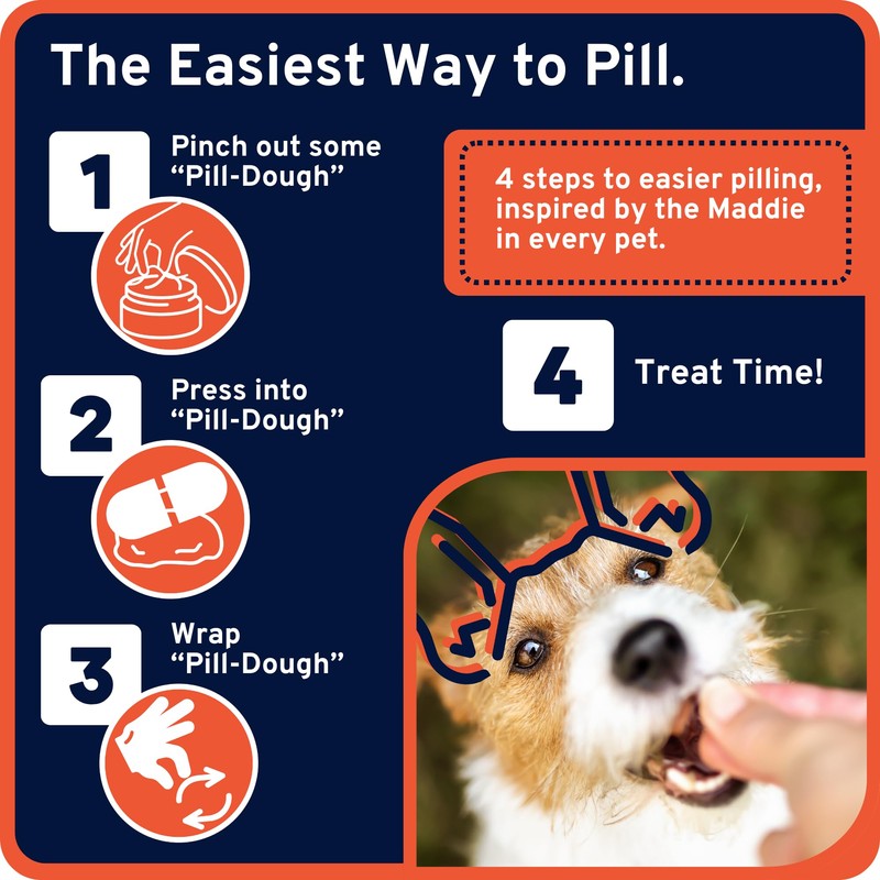 - The Easiest Way to Give Pets Medications - Maddie’s unique and extra tasty pill wrap paste easily molds around any size or type of pill, capsule, or powder. Use as much or as little Easy Pill as you want to create around 60 custom pouches or pockets per jar!