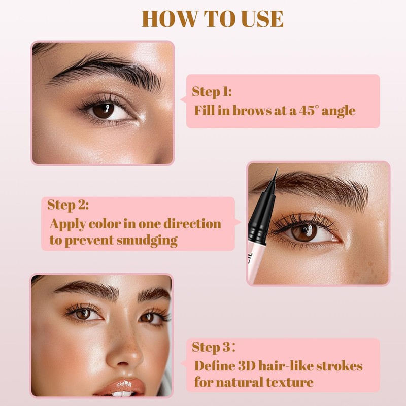 1️⃣ Use the ultra-fine tip to define the shape of your brows and fill in any sparse areas.