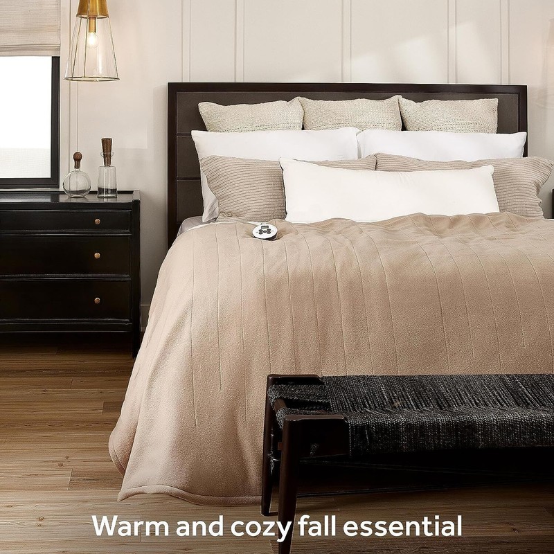 Ultra Heated Blanket 12-Heat Settings Auto Off Machine Washable, Mushroom Beige, Full