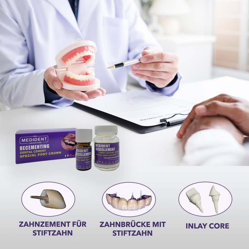 - Guaranteed success: with this "high adhesion" dental cement, you can easily attach your tooth to a freshly loosened pin.