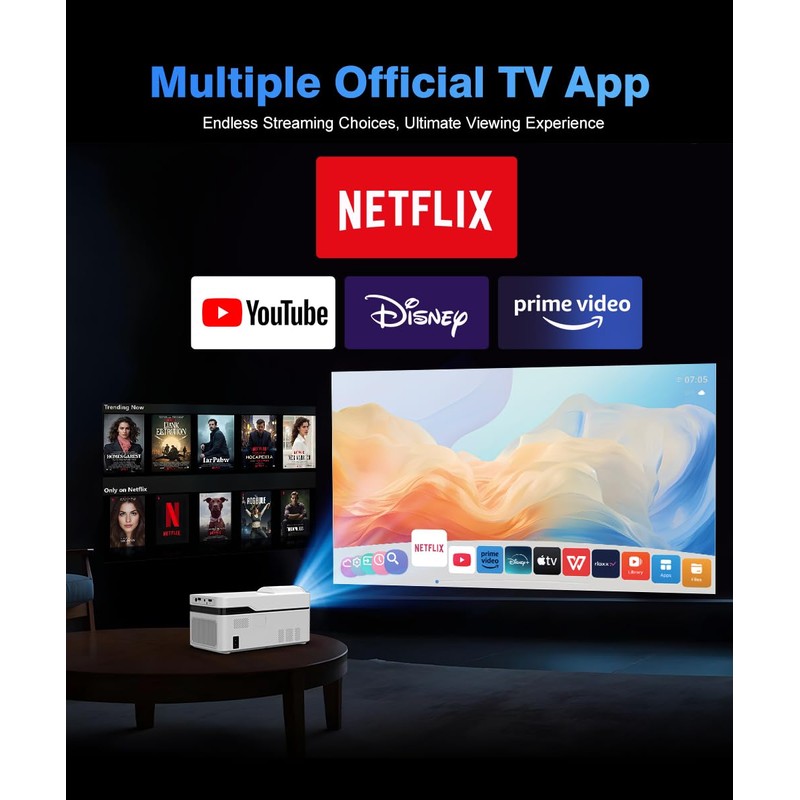 - Built-in Licensed Apps: Features a built-in Smart TV operating system, offering access to 1,000,000 videos. Enjoy licensed apps like Netflix, Prime Video, and YouTube directly on the projector. Dive into endless entertainment with one device, perfect for home theaters or portable use
