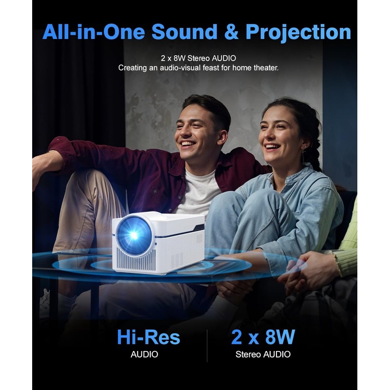 - All-in-One Sound & Projection:Dual speakers deliver stereo sound with surround effects, providing balanced audio for an enhanced home theater experience. Combining clear visuals and quality sound, this all-in-one solution eliminates external speakers, creating a cinema-like atmosphere at home
