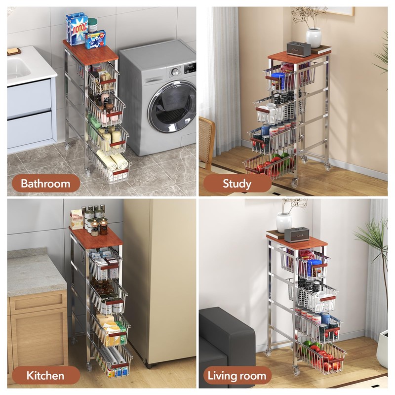 - Designed for Gaps & Tight Spaces: At only 23.5cm wide, this 5-tier cart fits perfectly in narrow gaps beside refrigerators, washing machines, or cabinets.