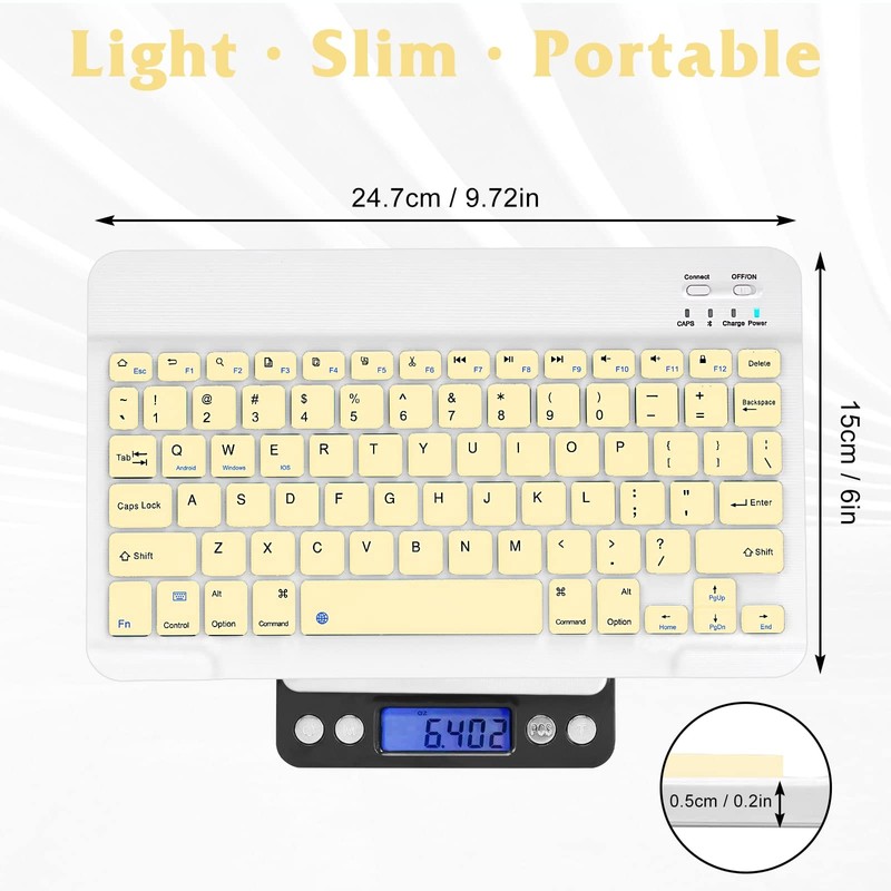 - Cable-Free: Use Bluetooth Connection with your mobile devices such as tablets and mobile phones. Bring you more convenience when you need to type. Operating distance up to 10 meters.
