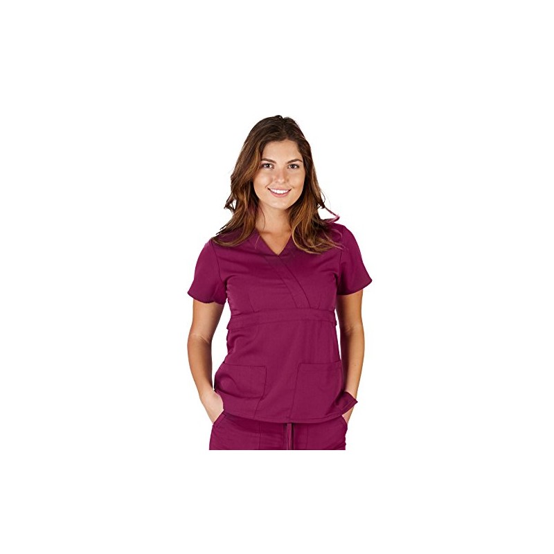 Ultra Soft Brand Scrubs - Premium Womens Junior Fit 3 Pocket Mock Wrap Scrub Top, Burgundy 36144-Small