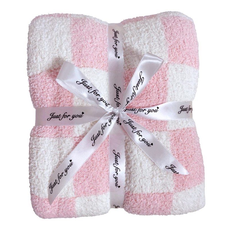 Ultra Soft Checkerboard Grid Blanket Cozy Buffalo Check Throw Fluffy Knitted Reversible Throw Blanket Lightweight Fleece Checkered Blanket for Sofa Couch Bed Travel, Blush Pink, 51''x63''