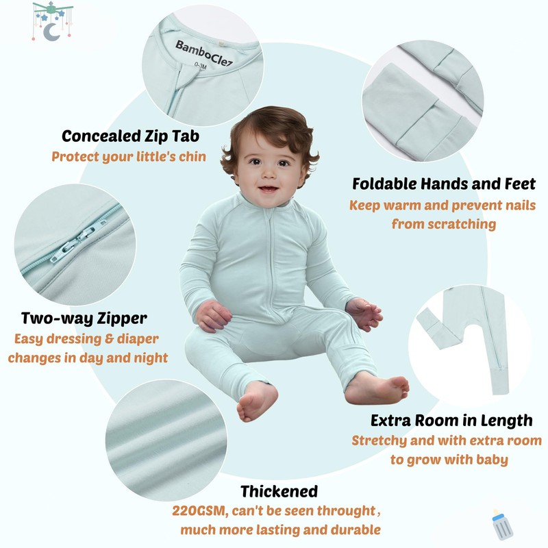- 【Smart Safety Features】 Designed with fold-over mitten cuffs to prevent scratching and convertible foot cuffs that easily switch between footies and footless rompers. The convenient 2-way zipper makes nighttime diaper changes effortless.