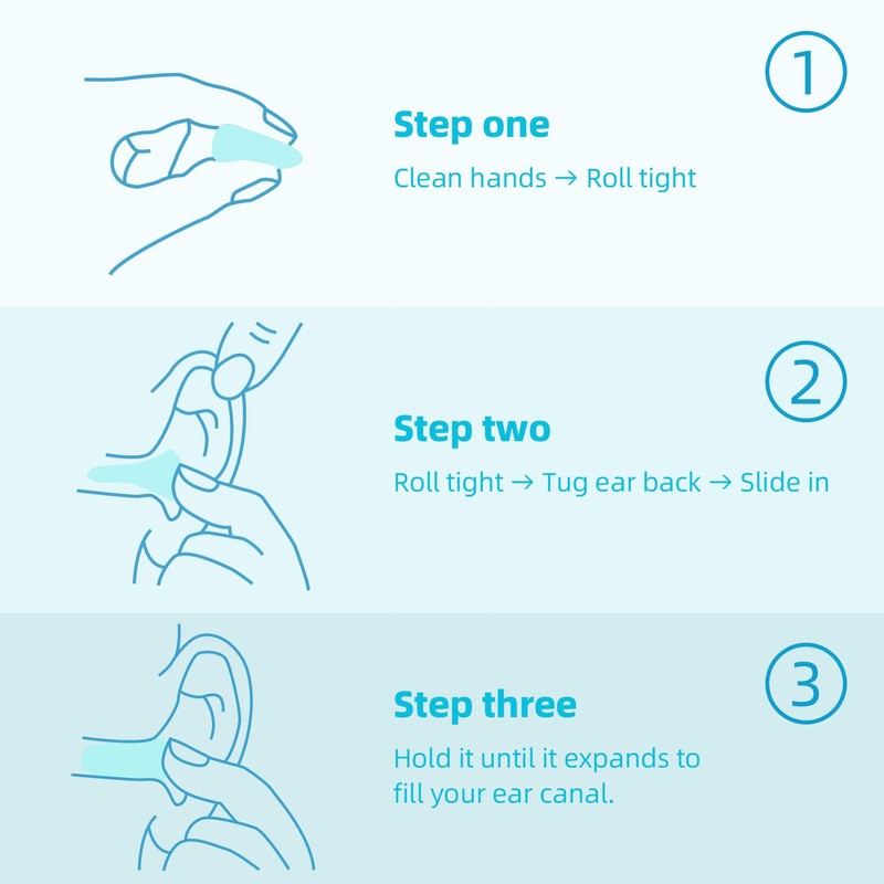 - Note: Please follow the picture instructions to wear earplugs correctly for effective noise reduction effects.