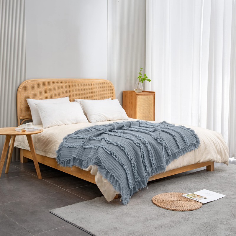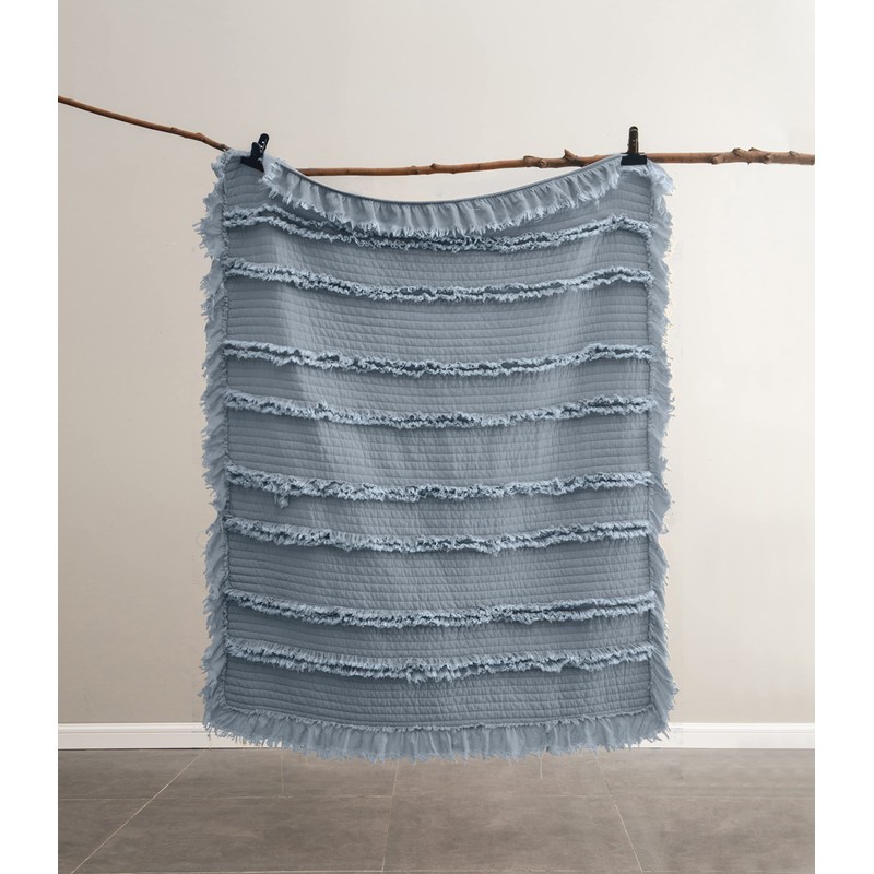 - Chic Style:Stone wash made the quilted blanket a chic vintage style. This stripe stitched throw has a beautiful ruffled edge detail that balances practicality and aesthetics.Suitable for farmhouse and Boho style decoration.