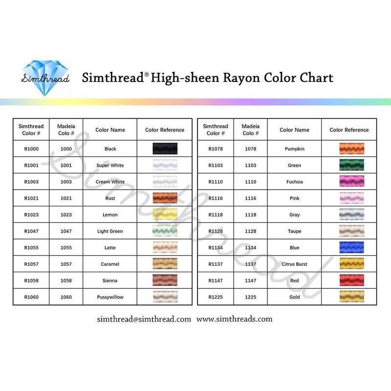 - [COLOR CONVERSION ]: Our Rayon embroidery thread can be converted into Madeira colors.