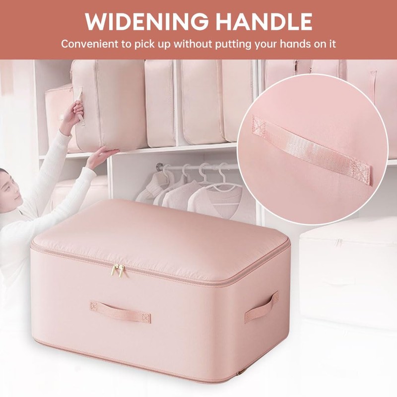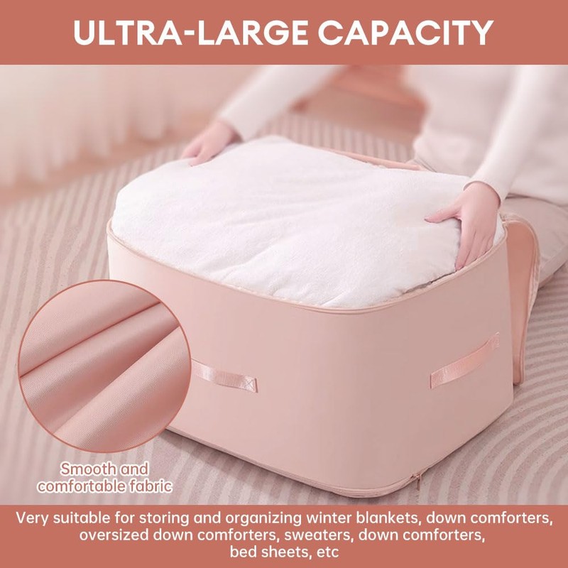 Effortlessly store and organize winter blankets, duvets, comforters, and more with our high-capacity compression storage bags. Made from upgraded nylon fabric, our bags protect clothes from wrinkles and stains while being durable and water-repellent. They're perfect for travel or storing in attics and basements. Unlike others, our bags are built to last with reinforced handles and sturdy zippers, making them lightweight, foldable, and ideal for moving, rentals, or college dorms. These versatile bags can store clothing, bedding, toys, and more, offering a reliable solution for maximizing space whether you're moving or organizing. Enjoy up to 40% space savings without needing a vacuum, ensuring a tidy home or suitcase effortlessly.