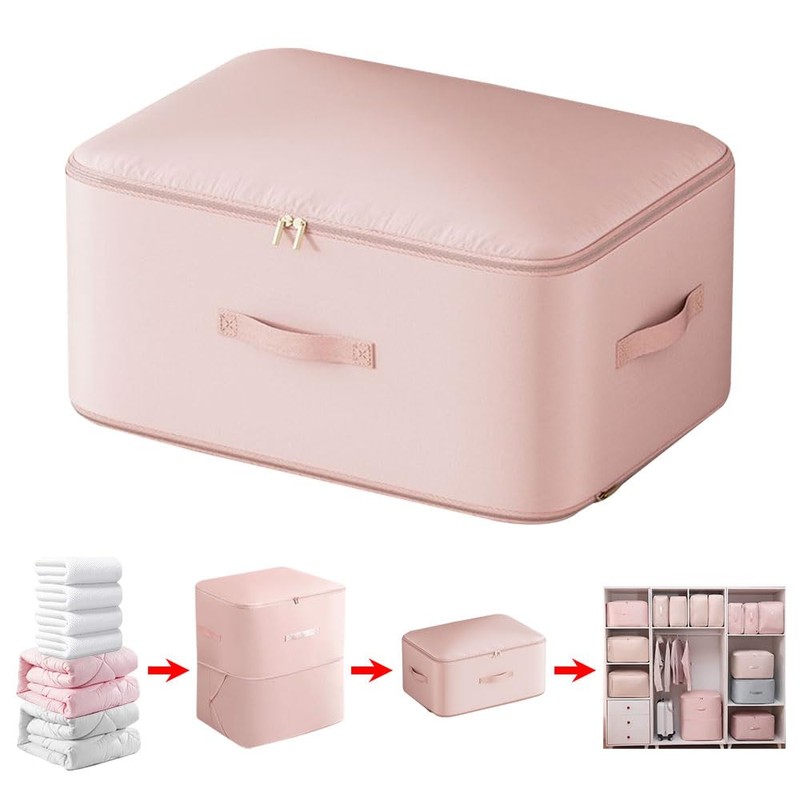 Ultra Space Saving Compression Storage Bags, Space Saving Bags, Large Capacity Organizer for Comforters, Blankets, and Clothes, Vacuum Seal Bags(Pink)