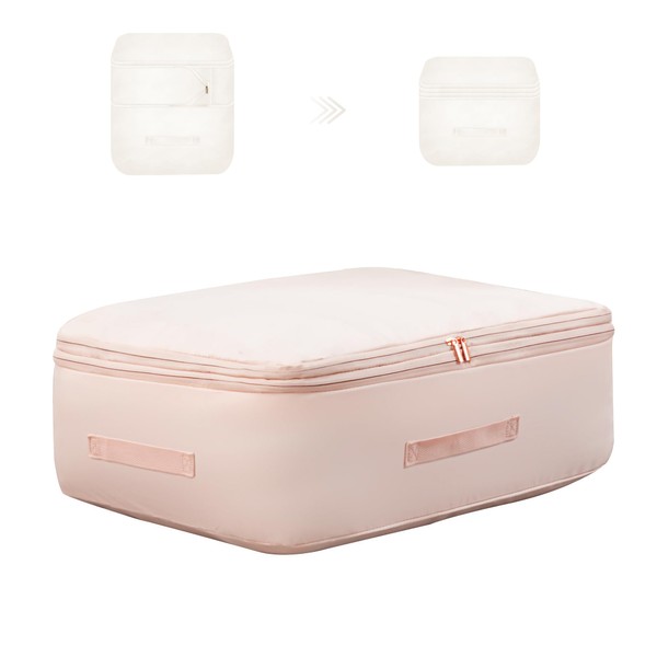 Ultra Space Saving Self Compression Organizer, Comforter Storage Bag for Clothes, Blankets, Pillows, Duvet, Comforters, Bedding Sets and Much More (Pink,L - 54 * 42 * 30cm)