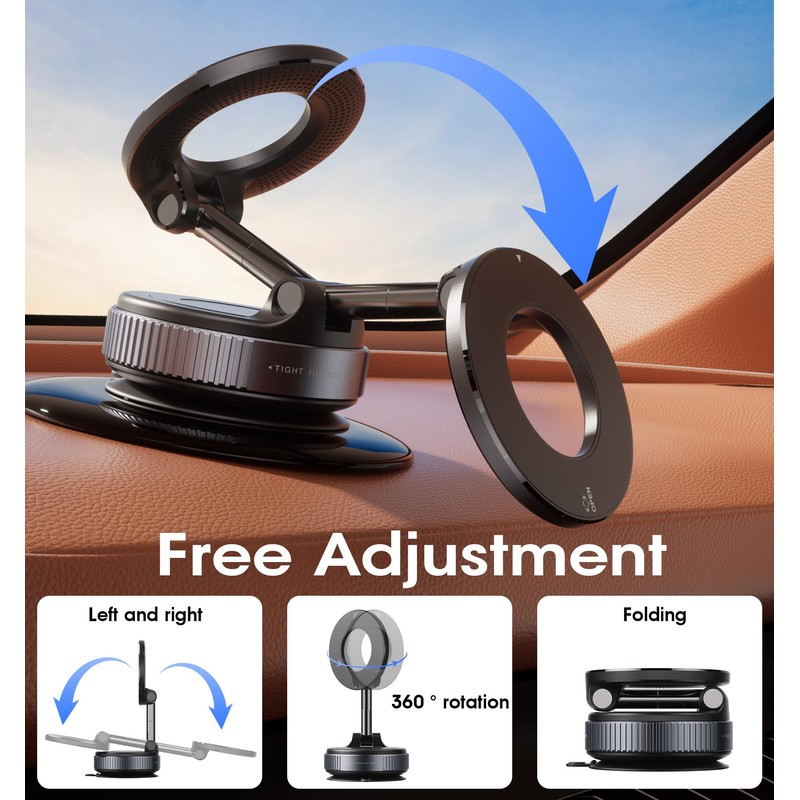 ✅ Enhanced Vacuum Suction with Twist-Lock Mechanism – Designed for superior hold, this foldable magnetic car mount features reinforced vacuum suction and a manual twist-lock system for maximum stability. Unlike adhesive-based mounts, it offers a quick-release design for easy repositioning without leaving residue. The more it vibrates while driving, the stronger the suction becomes—ideal for secure phone mounting in your car.
