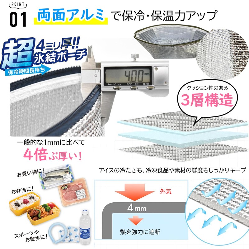 - (0.2 inch (4 mm) Extra Thick Construction and High Cold Retention Performance) Adopts a 0.2 inch (4 mm) insulation structure that is approximately 4 times thicker than typical 0.04 inch (1 mm) thick cold bags. The interior and exterior uses vapor-deposited aluminum material to prevent heat from entering and keep it cool. Suitable for carrying lunch in summer or cold beverages