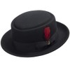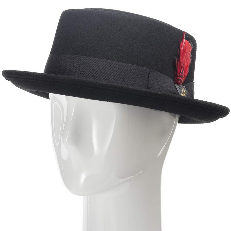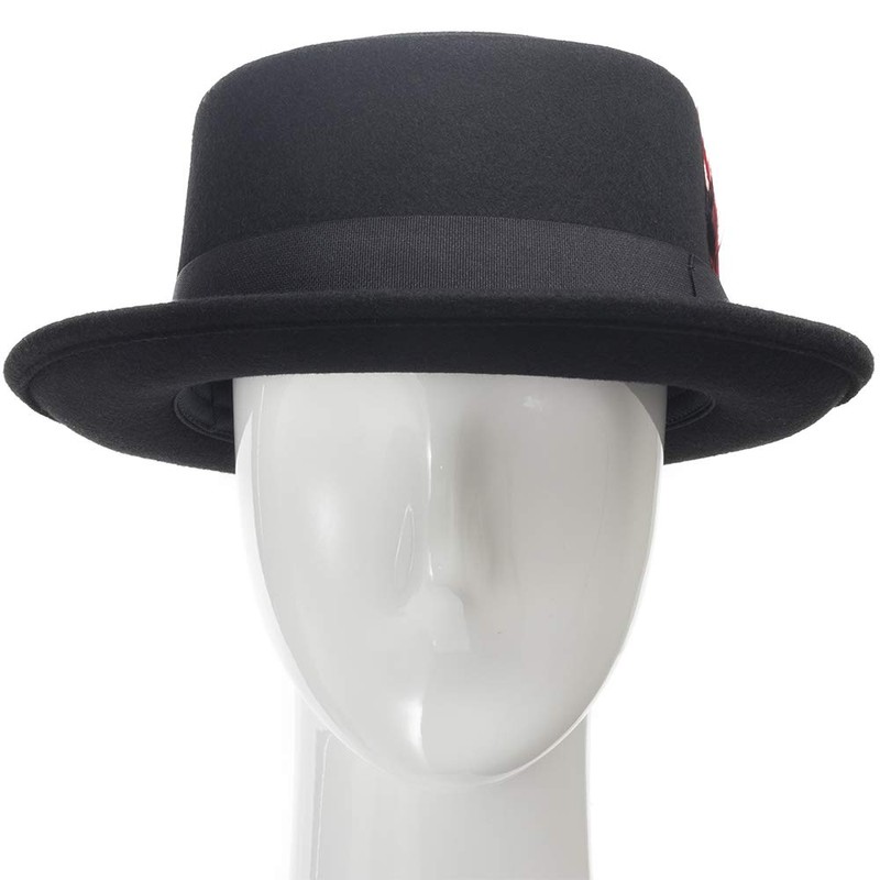 ULTRAFINO Riff Wool Felt Classic Jazz Porkpie Hat with Feather Black Large