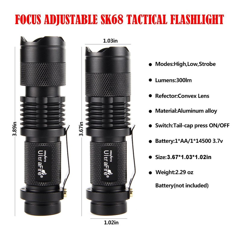 ULTRAFIRE 5 Pack SK68 Tactical and Small Flashlights,7w 3-Mode Pocket Torch Adjustable Focus Zoom Light Lamp