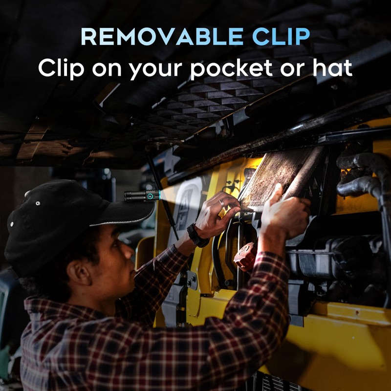 - MAGNETIC TAIL CAP - Ingeniously designed with a magnetic tail cap and pocket clip, allowing you to mount the light on any metal surface. The pocket clip can also be utilized to hang the light on a cap, trouser, or any EDC carrying tool, making it your ultimate portable illumination companion.