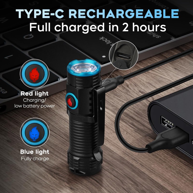 - CONVENIENT USB-C CHARGING - With an internal USB Type-C charging port, you no longer need to disassemble your flashlight for charging. Just plug it in and you're good to go!