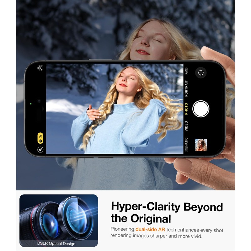 - AR optical technology, lossless shootingIt adopts outstanding innovative AR technology, with a light transmittance of 100%. Ensure that your photographic works maintain their true essence, vibrant colors, and clear details, allowing you to capture better and higher-quality images anytime, anywhere, with genuine optical-grade lens protection glass.