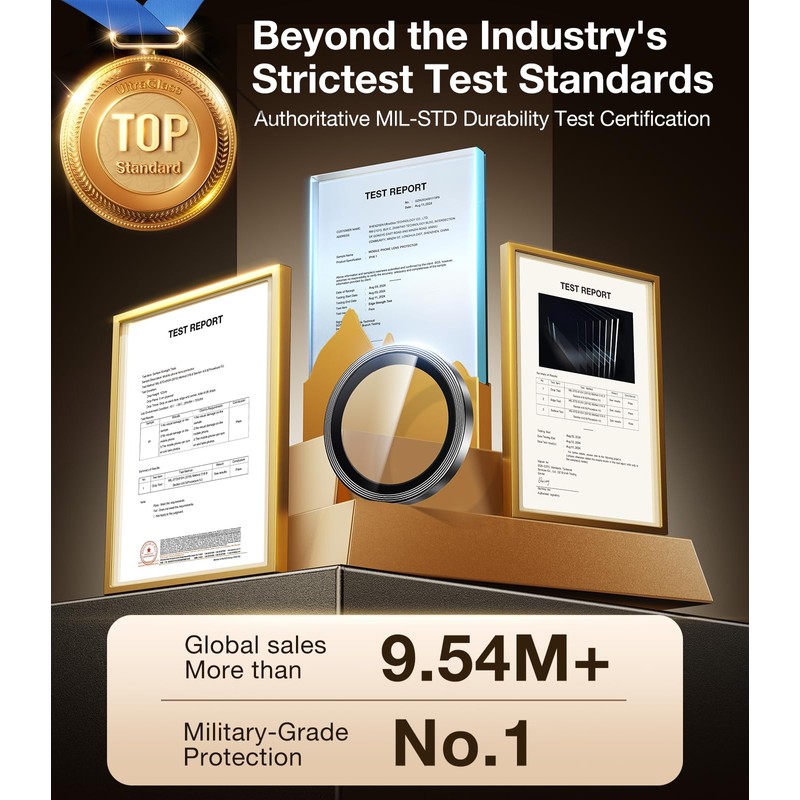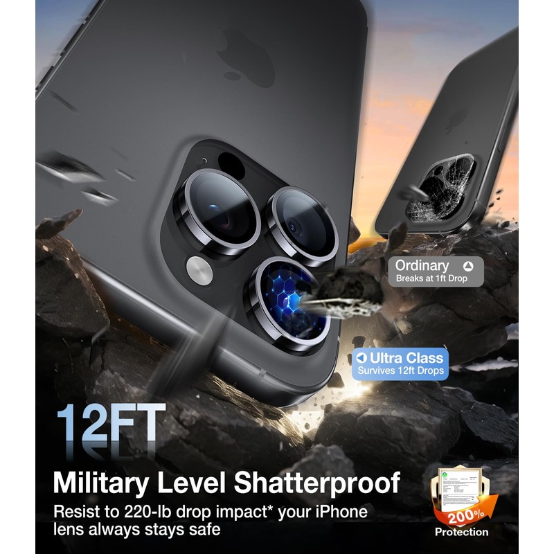 - Industry NO.1 Military-Grade ShatterproofAuthorized by International Military Standard with 36+ rigorous engineering tests of 220lbs impact, 12ft drops, 20,000+ scratch tests, its strength, toughness and durability perform NO.1 among all camera lens glass.