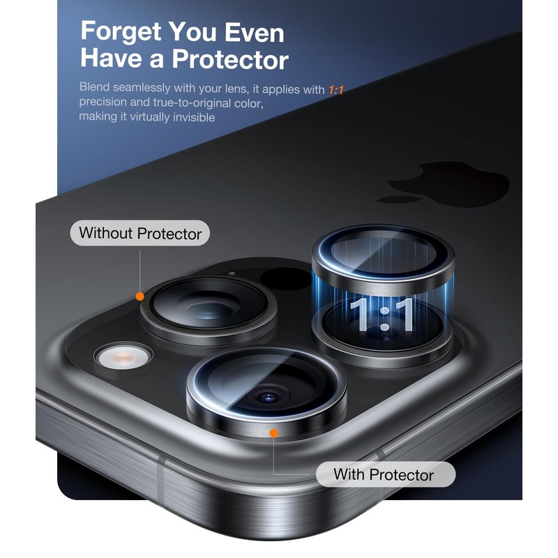 - Invisible Protection, 1:1 Full Covers the iPhone's Camera LensSimulating iPhone's camera lens design, UltraGlass wraps around every curve of the camera lens in enhanced 1:1 3D for full coverage of the most vulnerable camera lens edges. Plus, it's visually invisible because it blends seamlessly with the iPhone 16 Pro Max/16 Pro camera cover.