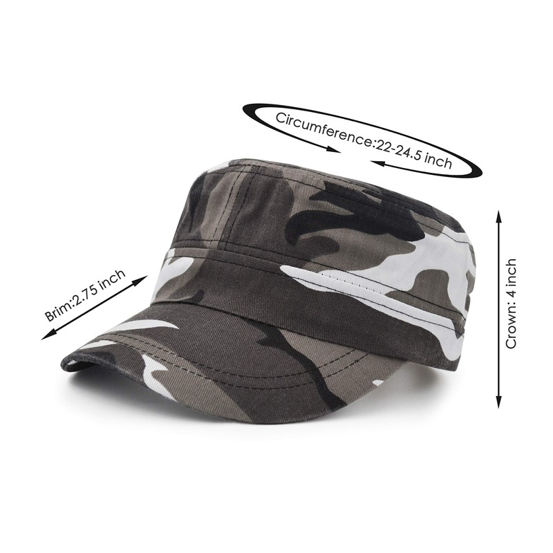 UltraKey Flat Top Baseball Cap, Men Women Cotton Baseball Twill Army Millitary Hat Cap Grey