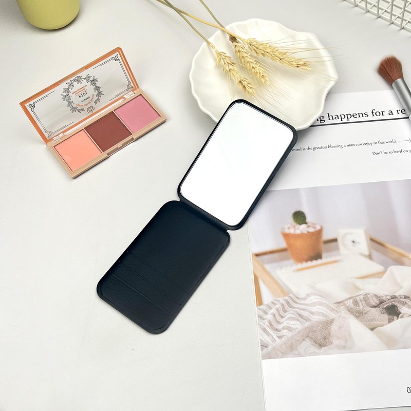 - The mirror is encased in a premium PU leather cover that not only enhances its visual appeal but also ensures it can withstand the rigors of travel. It’s built to last while maintaining its elegant look.