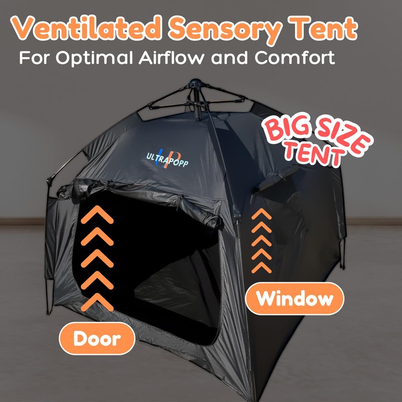 Ultrapopp Extra Large & Big Sensory Tent for Kids, Instant Easy Setup & Pack Blackout Calming Tents for Autistic Children, Autism ADHD SPD OCD, 1-4 Person (Black, 47x47x47 in).
