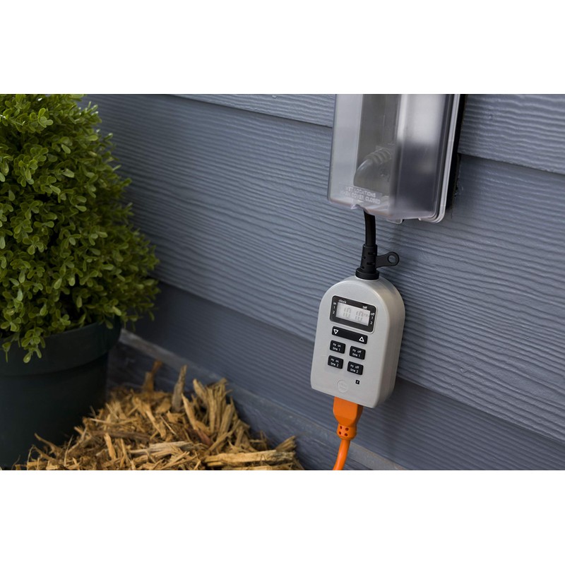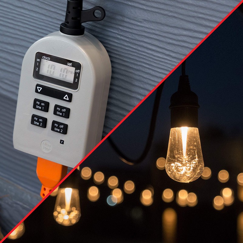UltraPro Outdoor Timer - Grounded Digital, Single Outlet, Simple Programmable, Weather-Resistant, Seasonal Lights Timer, Landscape, 1 Pack, Gray, 54850
