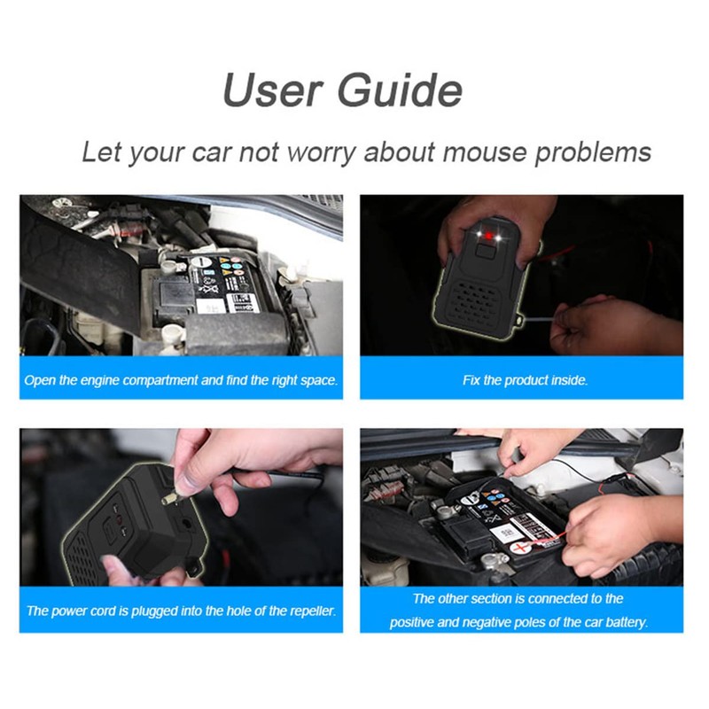 - Dual Repellent Technology: Emits a combination of high-frequency ultrasonic waves and strobe lights to humanely repel mice, rats and other rodents from the car without harming them