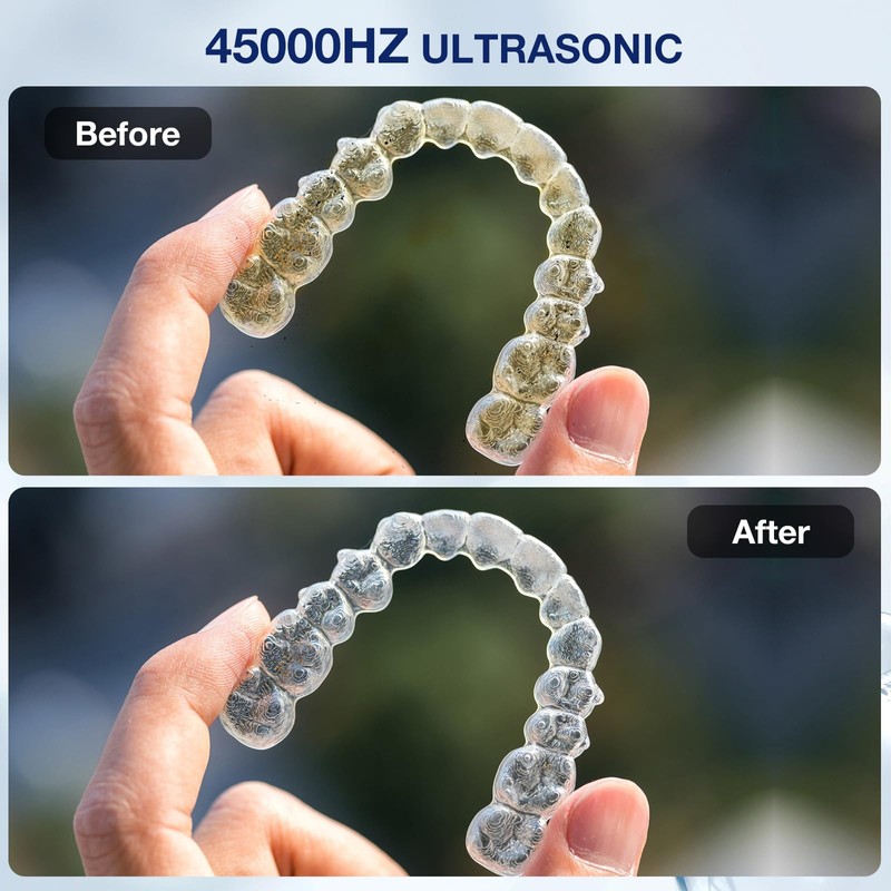 - UV-Assisted Cleaning Power: Combining ultrasonic waves with 4 upgraded UV lights, this ultrasonic retainer cleaner delivers deep 360° cleaning while neutralizing odors. Keep your retainers looking and feeling fresh after each cleaning session.