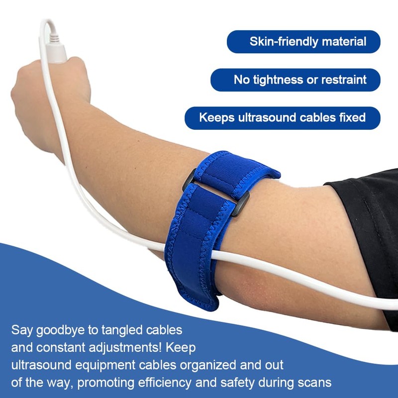 It keeps the cord out of the gell! No more gelled cords to manage! Designed to fit securely on arms with a circumference between 9" and 16", this brace ensures that your ultrasound probe cable is held firmly in place, reducing strain and enhancing precision. Why Choose Our Ultrasound Probe Cable Brace? At 84% of the sonographers scan in pain and one of every five of them sustains a career-ending injury. Provide comfort and cord management for the sonographers during. Ultrasound strap technology enhances mobility and flexibility for sonographers, allowing them to perform scans with ease and precision. Package include 1 x Brace