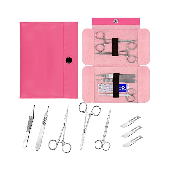Ultrassist Suture Tool Kit Includes: Scissors, Adson Forceps, Needle Driver, Mosquito Forceps, Scalpel Handle; Complete Suture Instrument Kit for Educational Training-Pink