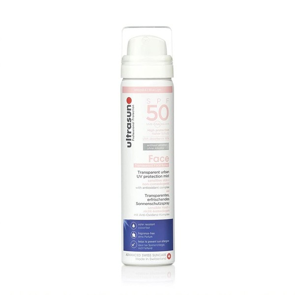 Product DescriptionUltrasun 50spf UV Face & Scalp Mist delivers high UVA and UVB broad spectrum protection in a super lightweight, non greasy, quick drying transparent spray. It can be worn on top or beneath make up and is gentle enough for the most sensitive skin. Containing Infraguard a powerful anti oxidant from organic sunflower shoots and the Tara tree that inhibits light induced skin ageing.IngredientsButane, Aqua, Isobutane, Diethylhexyl Adipate, Diethylamino Hydroxybenzoyl Hexyl Benzoate, Bis-Ethylhexyloxyphenol Methoxyphenyl Triazine, C12-15 Alkyl Benzoate, Ethylhexyl Salicylate, Undecane, Polyglyceryl-4 Diisostearate Polyhydroxystearate Sebacate, Glycerin, Acrylates C12-22 Alkyl Methacrylate Copolymer, Caprylic Capric Triglyceride, Diethylhexyl Butamido Triazone, Hydrogenated Polydecene, Hydrogenated Polyisobutene,Tridecane, Dibutyl Adipate, Hydrogenated Poly (C6-14 Olefin), Polyglyceryl-3 Oleate, Ethylhexyl Triazone, Maltodextrin, Phenoxyethanol, Diisostearoyl Polyglyceryl-3 Dimer Dilinoleate, Saccharide Isomerate, Arginine, Coco-Glucoside, Citric Acid, Ethylhexylglycerin, Disodium Lauryl Sulfosuccinate, Caesalpinia Spinosa Fruit Pod Extract, DisodiumEDTA, Sodium Citrate, Helianthus Annuus Sprout Extract, Tocopherol,Glycine Soja (Soybean) Oil, Helianthus Annuus Seed OilDirectionsUse this face & scalp mist for high UVA and UVB broad spectrum protection. It is easy to apply, non-greasy, and quick-drying. Apply it on top of, or beneath make-up. It is gentle enough for sensitive skin and contains InfraGuard? to inhibit light-induced skin aging and protect skin cells from blue light and infrared rays.Manufacturer Contact InformationUltrasun AG, CH-8045 Zrich. Ultrasun AG, GB-Redhill, Surrey. Lalique Beauty Distribution SARL, FR-Ury.