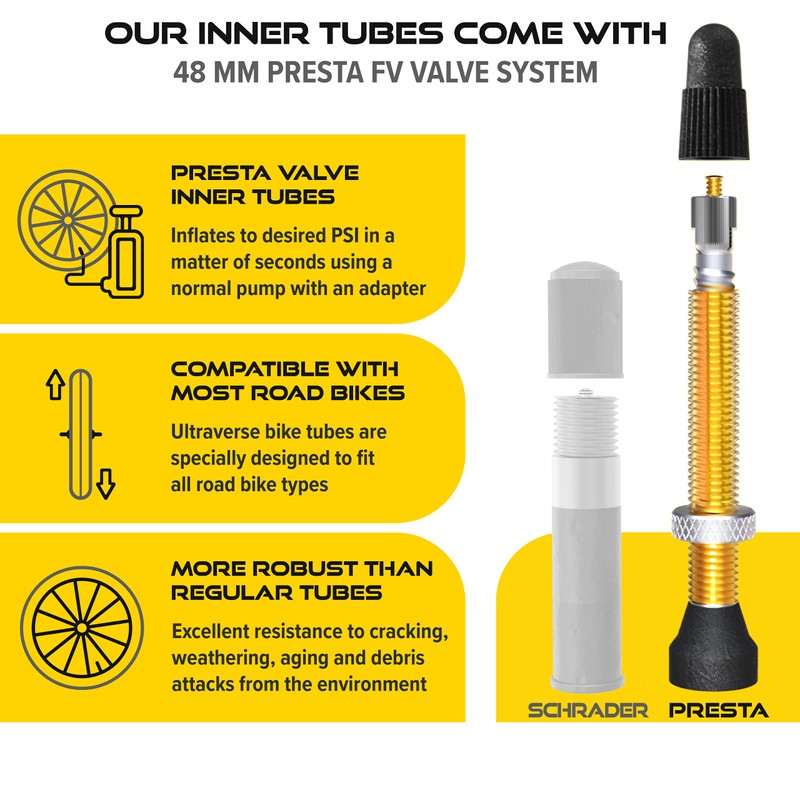 - User Friendly Innertubes System - The bike tubes are specially designed to fit all types of road and cyclocross bicycles