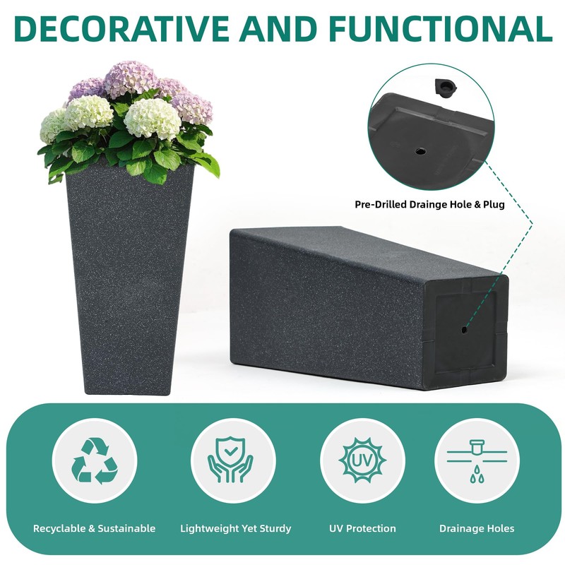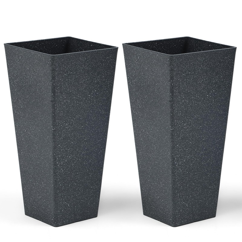 - Artisan Terrazzo Texture: Elevate your garden with these striking contemporary planters. Featuring an oversized, tall and square - shaped design, along with a sleek, modern minimalist look and a handcrafted faux terrazzo finish, they are a standout addition to your front porch, patio or living space. Whether you're using them as flower plant pots or for other greenery, these plastic planters blend seamlessly with various decors, adding a touch of elegance and style.