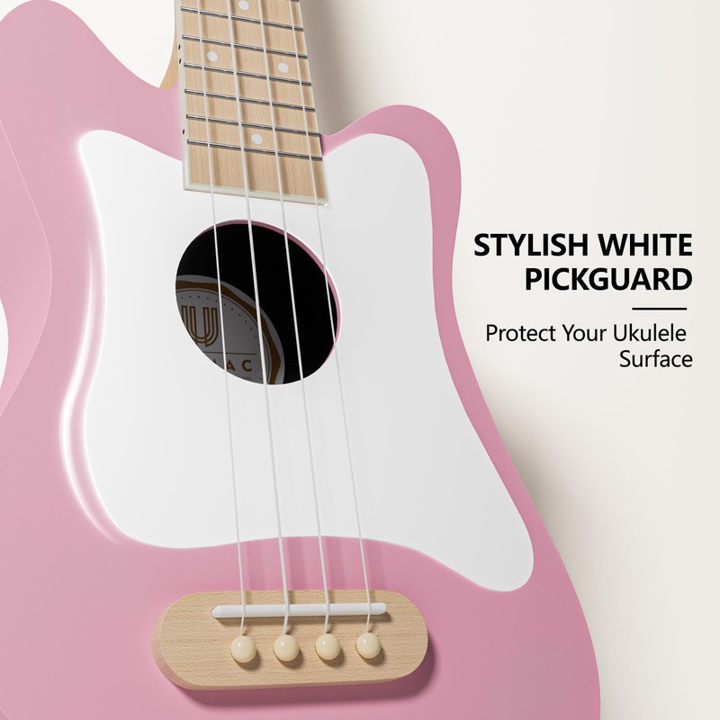 - 【Stylish White Guard Plate】 Our ukulele comes equipped with a chic white guard plate, not only safeguarding the top panel from scratches but also adding a touch of elegance to its appearance.
